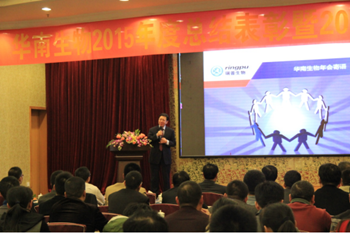 2016年1月13日下午,廣州市華南農大生物藥品有限公司2015年總結表彰暨2016年新春年會在廣州市增城區百花山莊酒店隆重舉行。