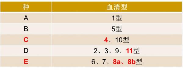根據(jù)限制性內(nèi)切酶消化不同,FAdV-Ⅰ分為A、B、C、D、E 5個(gè)種。根據(jù)血清交叉中和試驗(yàn),可分為12個(gè)血清型。A對(duì)應(yīng)的血清1型,B對(duì)應(yīng)的血清5型,等等。血清型8b和11型之間有一定的交叉保護(hù)性,但大部分血清型之間幾乎無(wú)交叉保護(hù)性。FAdV-Ⅰ主要在禽類呼吸道和消化道上皮細(xì)胞內(nèi)復(fù)制,形成包涵體。C4型引起禽HPS;各血清型都能引起IBH,但主要是血清8a、8b和11型;A1、8a和8b型能引起禽肌胃糜爛。